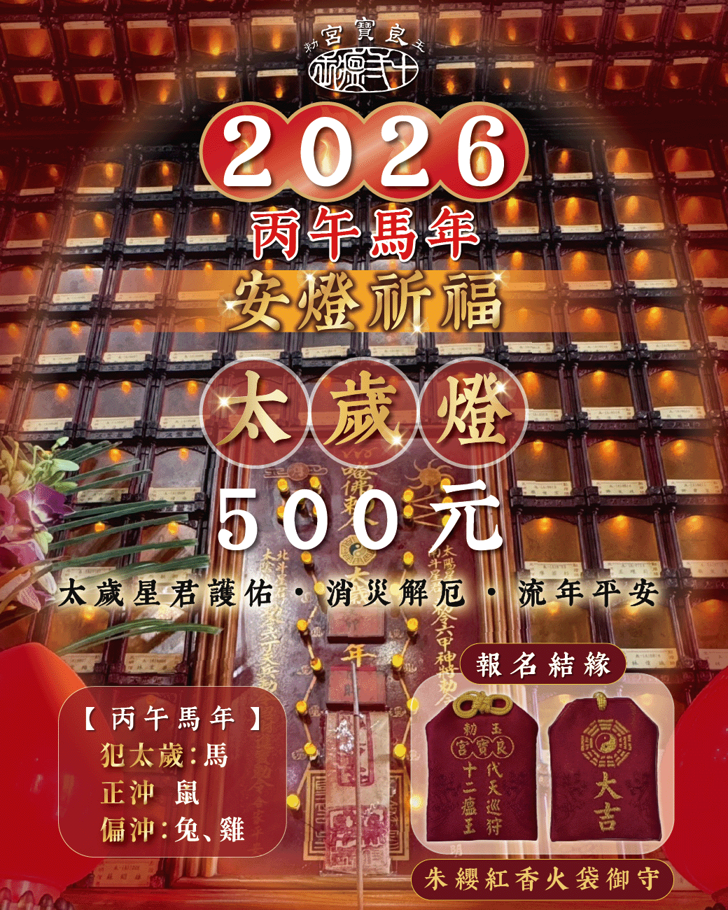 溫馨提醒: 若您擔心流年犯沖影響運勢,歡迎蒞臨「玉勅良寶宮」點燈,一祈流年平安,二保福氣升級!